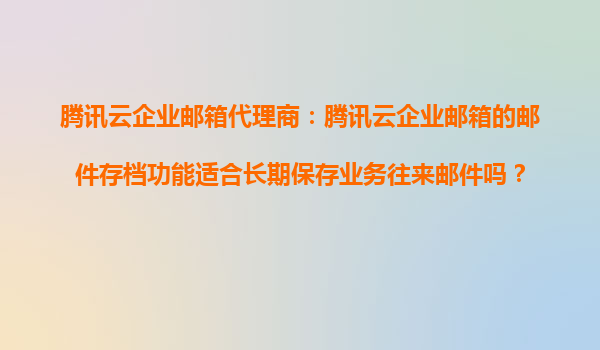2025-08-23騰訊云企業郵箱代理商:騰訊云企業郵箱的郵件存檔功能適合長期保存業務往來郵件嗎? 在當今數字化辦公環境中,企業郵件的長期存檔不僅是合規性要求,更是企業知識管理和風險控制的重要手段。作為國內領先的云服...