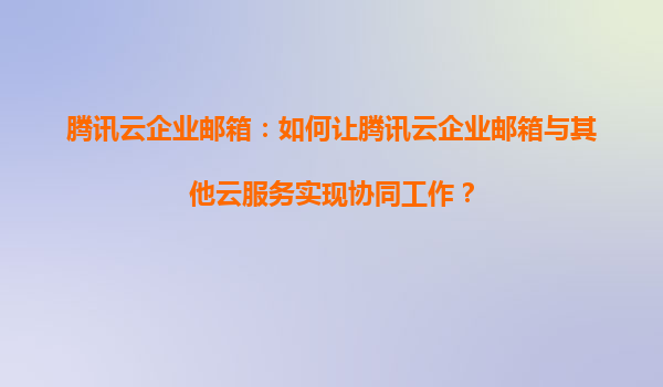 2025-08-19騰訊云企業郵箱:如何與其他云服務實現協同工作? 一、騰訊云企業郵箱的核心優勢 騰訊云企業郵箱作為國內領先的企業級郵件解決方案,具備以下核心優勢: 高可用性與安全性:...