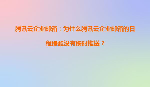 2025-08-19騰訊云企業郵箱:為什么騰訊云企業郵箱的日程提醒沒有按時推送? 隨著數字化辦公的普及,企業郵箱已成為企業內部溝通和協作的重要工具。騰訊云企業郵箱作為國內領先的企業郵箱服務之一,憑借其強大的功能、穩定...