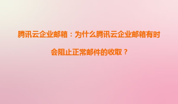 2025-08-19騰訊云企業郵箱:為什么騰訊云企業郵箱有時會阻止正常郵件的收取? 一、引言 騰訊云企業郵箱作為國內領先的企業郵箱服務之一,憑借其高安全性、穩定性和豐富的...