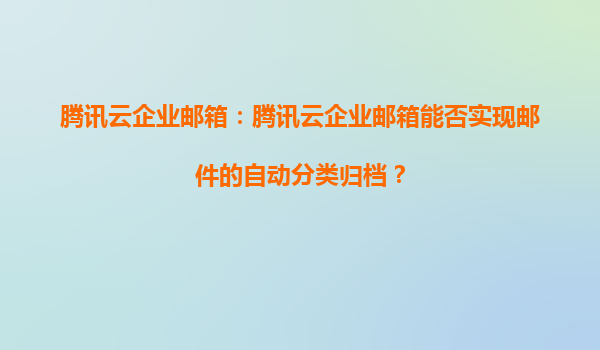 2025-08-17騰訊云企業郵箱:騰訊云企業郵箱能否實現郵件的自動分類歸檔? 一、騰訊云企業郵箱概述 騰訊云企業郵箱是基于騰訊多年技術積累推出的企業級郵件服務,不僅提供穩定的郵件收發功能,還整合了騰訊云強大...