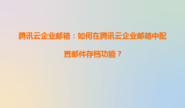 騰訊云企業郵箱如何配置郵件存檔功能 騰訊云企業郵箱作為國內領先的企業級郵件服務,不僅提供穩定高效的郵件收發體驗,還具備強大的郵件存檔功能。該功能可幫助企業長期保存往來郵件,滿足合規審計需求,同時保障...