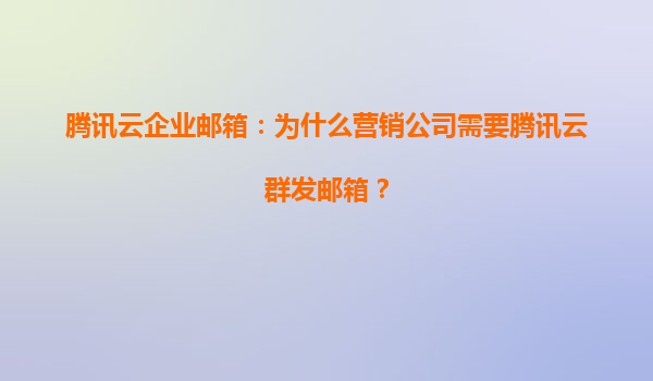 2025-08-14騰訊云企業郵箱:為什么營銷公司需要騰訊云群發郵箱? 一、營銷公司的核心需求與郵件群發的價值 在數字化營銷時代,精準觸達目標客戶是營銷公司的核心需求。郵件營銷因其高性價比、可追蹤性和廣泛覆蓋...