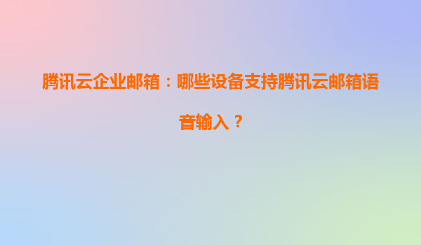騰訊云企業郵箱:哪些設備支持騰訊云郵箱語音輸入? 一、騰訊云企業郵箱的語音輸入功能概述 騰訊云企業郵箱作為一款高效的企業級通信工具,不僅提供傳統的郵件收發功能,還集成了先進的語音輸入技術,幫助...