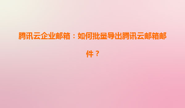 2025-08-10騰訊云企業郵箱:如何批量導出騰訊云郵箱郵件? 一、騰訊云企業郵箱的核心優勢 騰訊云企業郵箱作為國內領先的企業級郵件服務,憑借以下優勢成為眾多企業的首選: 高安全性:采用銀行級加密傳...