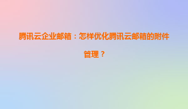 2025-08-10騰訊云企業郵箱:怎樣優化騰訊云郵箱的附件管理? 一、騰訊云企業郵箱的附件管理現狀與挑戰 隨著企業數字化轉型加速,郵件附件的使用頻率顯著增加,但傳統郵箱的附件管理往往存在以下痛點: 1.容量限...