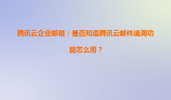 2025-08-08騰訊云企業郵箱郵件追溯功能詳解 一、郵件追溯功能的核心價值 騰訊云企業郵箱的郵件追溯功能是企業級郵件管理的重要工具,它允許管理員通過時間、發件人、收件人等關鍵字段快速定位歷史郵件,有效解決郵件...