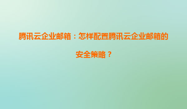 2025-08-08騰訊云企業郵箱:如何配置安全策略及優勢解析 一、騰訊云企業郵箱安全策略的重要性 在數字化辦公時代,企業郵箱作為核心通信工具,承載著大量敏感信息。騰訊云企業郵箱憑借其強大的安全防護能力,成為眾多...