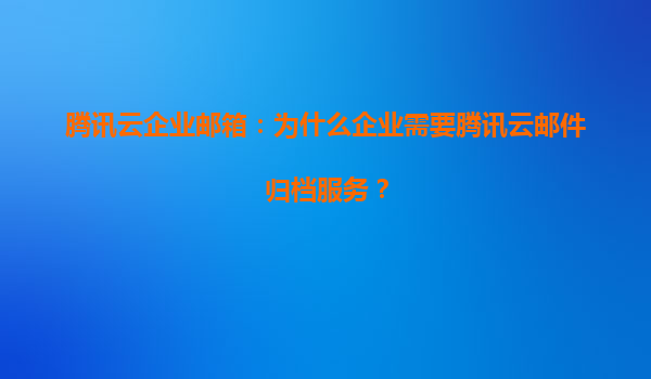 2025-08-08騰訊云企業郵箱:為什么企業需要騰訊云郵件歸檔服務? 一、合規性與法律風險管理的剛需 在金融、醫療、法律等行業,郵件作為重要溝通憑證,需滿足《網絡安全法》《個人信息保護法》等法規的存檔要求。騰訊...