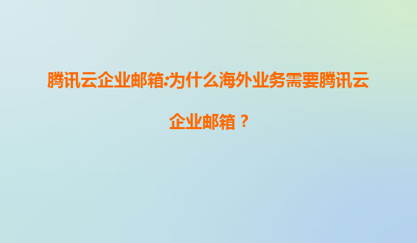 2025-08-06騰訊云企業郵箱:為什么海外業務需要騰訊云企業郵箱? 引言 隨著全球化進程的加速,越來越多的企業開始拓展海外市場。在海外業務中,高效、穩定的企業郵箱系統是溝通協作的核心工具。騰...