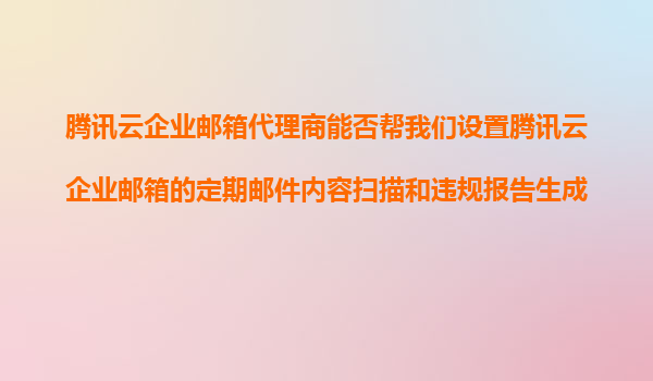 2025-11-10騰訊云企業(yè)郵箱代理商能否幫我們設(shè)置定期郵件內(nèi)容掃描和違規(guī)報(bào)告生成? 一、騰訊云企業(yè)郵箱的合規(guī)管理需求 隨著企業(yè)對數(shù)據(jù)安全和合規(guī)管理的重視,定期郵件內(nèi)容掃描與違規(guī)報(bào)告生成已成為...