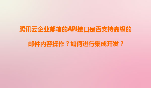 2025-11-10騰訊云企業(yè)郵箱API高級(jí)功能解析與集成開(kāi)發(fā)指南 一、騰訊云企業(yè)郵箱API的核心優(yōu)勢(shì) 騰訊云企業(yè)郵箱基于微信同源技術(shù)架構(gòu),提供高可靠性的郵件服務(wù),其API接口在安全穩(wěn)定基礎(chǔ)上,支持以下高級(jí)郵件內(nèi)容操作: 富...