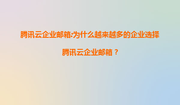 2025-07-08騰訊云企業郵箱:為什么越來越多的企業選擇騰訊云企業郵箱? 引言 隨著數字化轉型的加速,企業郵箱已成為企業日常運營不可或缺的工具。騰訊云企業郵箱憑借其強...