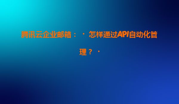 2025-07-07騰訊云企業郵箱:如何通過API實現自動化管理? 一、騰訊云企業郵箱API概述 騰訊云企業郵箱提供豐富的API接口,允許開發者通過編程方式實現郵箱賬號、郵件收發、組織架構等功能的自動化管理。API遵循RESTful...