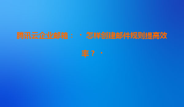 2025-07-07騰訊云企業郵箱:如何創建郵件規則提高工作效率? 一、郵件規則的重要性 在現代企業中,郵件溝通是日常工作中不可或缺的一部分。然而,隨著郵件數量的增加,如何高效管理郵件成為許多企業面臨的挑戰。騰訊...