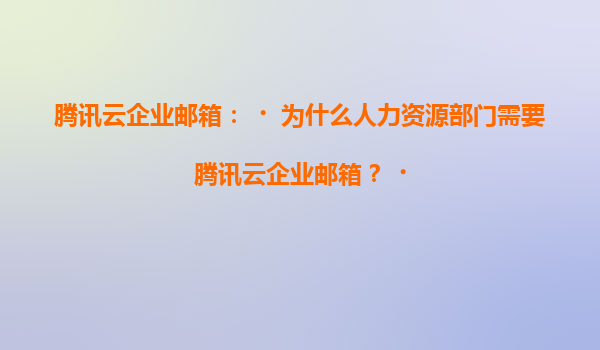 2025-07-07騰訊云企業郵箱:為什么人力資源部門需要騰訊云企業郵箱? 引言 在現代企業管理中,人力資源部門(HR)承擔著招聘、員工溝通、薪資管理、檔案存儲等重要職責。...