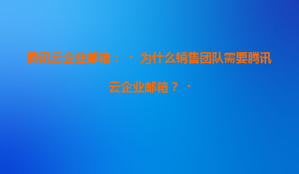 2025-07-06騰訊云企業郵箱:為什么銷售團隊需要騰訊云企業郵箱? 一、銷售團隊的溝通需求與企業郵箱的核心價值 銷售團隊是企業業務拓展的核心力量,高效、穩定的溝通工具是其成功的關鍵。騰訊云企業郵箱作為專業的企...