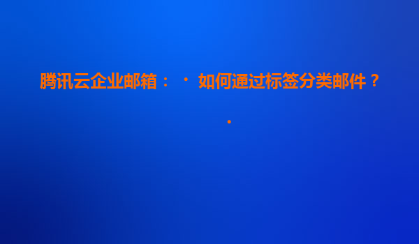 2025-07-06騰訊云企業郵箱:如何通過標簽分類郵件? 引言 在現代企業管理中,高效的郵件管理是提升工作效率的關鍵。騰訊云企業郵箱作為一款專業的企業級郵箱服務,提供了強大的郵件分類功能,尤其是通過標簽分類郵件...
