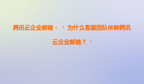 2025-07-06騰訊云企業郵箱:為什么客服團隊依賴騰訊云企業郵箱? 在當今數字化時代,企業郵箱不僅是溝通的工具,更是企業形象、信息安全和工作效率的重要保障。騰訊云企業郵箱憑借其強大的功能、穩定的性能和卓越的安全性...