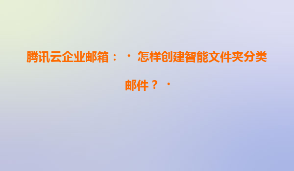 2025-07-06騰訊云企業郵箱:如何創建智能文件夾分類郵件 一、騰訊云企業郵箱的核心優勢 騰訊云企業郵箱作為國內領先的企業級郵件服務,依托騰訊強大的技術生態,具備以下核心優勢: 高安全性:采用銀行...