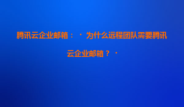2025-07-06騰訊云企業郵箱:為什么遠程團隊需要騰訊云企業郵箱? 一、遠程團隊的協作痛點與郵箱需求 隨著遠程辦公的普及,團隊分散在不同地域帶來的溝通效率低、數據安全隱患、管理成本高等問題日...