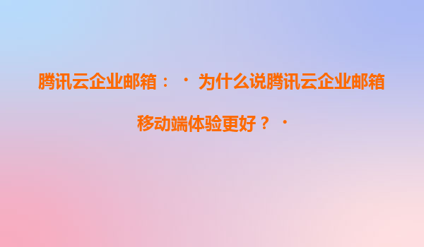 2025-07-06騰訊云企業郵箱移動端體驗優勢解析 多端無縫同步,辦公效率倍增 騰訊云企業郵箱支持iOS、Android等多平臺客戶端,實現郵件、日歷、聯系人實時同步。無論切換何種設備,未讀標記、草稿箱內容均保持一致,重...
