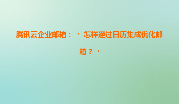 2025-07-06騰訊云企業郵箱日歷集成:高效協同的時間管理利器 一、企業郵箱與日歷深度整合的價值 騰訊云企業郵箱將郵件系統與日歷功能無縫銜接,解決了傳統辦公中日程管理與溝通分離的痛點。用戶無需切換多個平臺,在郵箱...