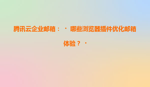 2025-07-05騰訊云企業郵箱:哪些瀏覽器插件優化郵箱體驗? 引言 在數字化辦公時代,企業郵箱已成為高效溝通的核心工具。騰訊云企業郵箱憑借穩定、安全的服務,成為眾多企業的首選。然而,單純依賴...