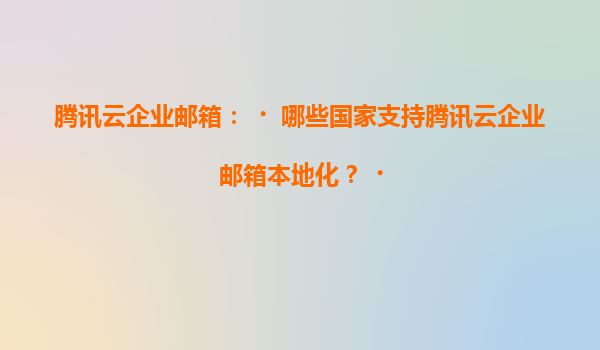 2025-07-05騰訊云企業郵箱本地化支持國家及優勢解析 一、騰訊云企業郵箱本地化支持的國家 騰訊云企業郵箱作為全球化的企業通信解決方案,目前已在中國大陸、中國香港、新加坡、美國、德國、韓國、日本、印度等多個國...