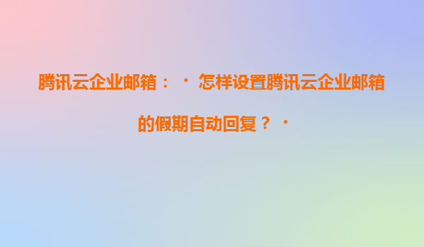 騰訊云企業郵箱:如何設置假期自動回復及騰訊云生態優勢解析 一、騰訊云企業郵箱假期自動回復設置指南 假期自動回復功能是企業郵箱的實用特性,騰訊云企業郵箱提供簡單易用的配置流程: 1.登錄管理后...