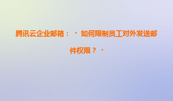2025-07-05騰訊云企業郵箱:如何限制員工對外發送郵件權限? 引言 在現代企業管理中,郵件系統是日常溝通的重要工具,但同時也可能成為信息泄露的渠道。為了保障企業數據安全,限制員工對外發送郵件的權限顯得尤為重...