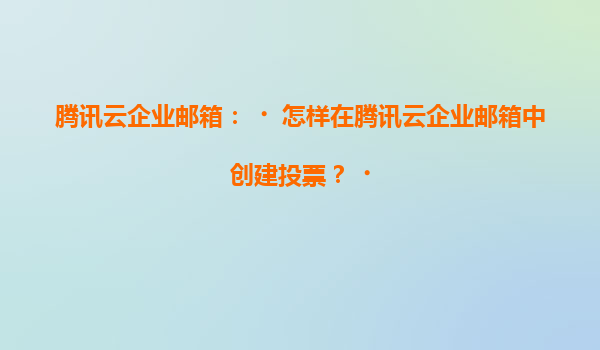 2025-07-05騰訊云企業郵箱:如何在騰訊云企業郵箱中創建投票? 一、騰訊云企業郵箱簡介 騰訊云企業郵箱是基于騰訊多年郵件系統運營經驗打造的專業企業郵箱服務,提供穩定、安全、高效的郵件溝通解...