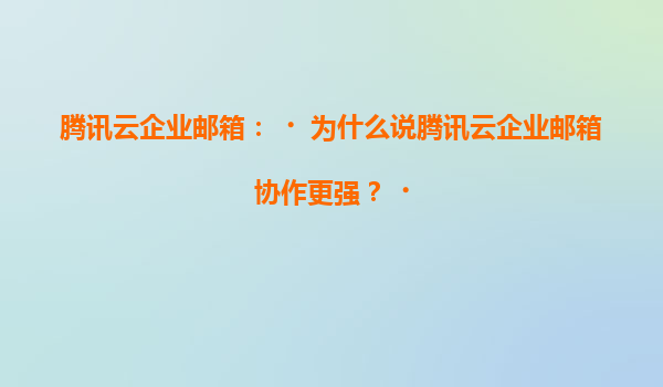 2025-07-05騰訊云企業郵箱:為什么說騰訊云企業郵箱協作更強? 在當今數字化辦公環境中,企業郵箱不僅是溝通工具,更是團隊協作的核心平臺。騰訊云企業郵箱憑借騰訊強大的技術實力和生態整合能力,為企業提供了高效、安全...