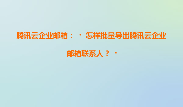 2025-07-05騰訊云企業郵箱:如何批量導出聯系人及產品優勢詳解 一、騰訊云企業郵箱批量導出聯系人操作指南 在企業日常管理中,批量導出聯系人是一項高頻需求。騰訊云企業郵箱提供了簡單高效的導出方案: 步...