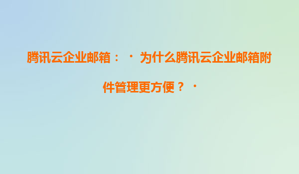 2025-07-05騰訊云企業郵箱:為什么騰訊云企業郵箱附件管理更方便? 一、騰訊云企業郵箱附件管理的核心優勢 騰訊云企業郵箱作為國內領先的企業級郵箱服務,其附件管理功能在設計上充分考慮了企業用戶的實際需求,通過...