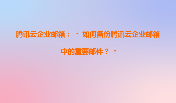 2025-07-05騰訊云企業郵箱:如何備份重要郵件及平臺優勢解析 一、騰訊云企業郵箱備份郵件的重要性 在數字化辦公時代,企業郵件承載著大量關鍵業務信息、合同文檔和客戶溝通記錄。一旦因誤刪、系統故障或安全事件導致...
