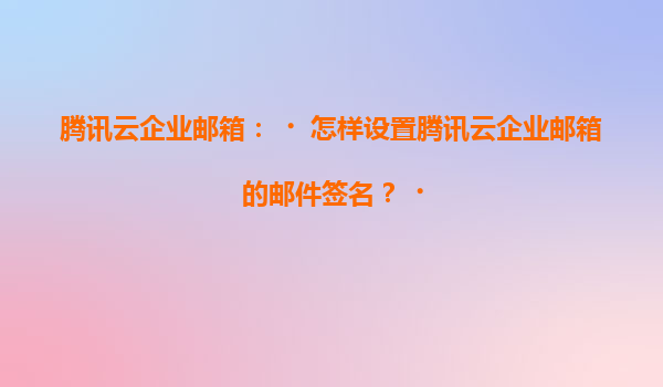2025-07-05騰訊云企業郵箱郵件簽名設置指南 騰訊云企業郵箱的核心優勢 騰訊云企業郵箱作為一款專業的企業級郵件服務,依托騰訊強大的技術實力和豐富的運營經驗,為用戶提供了穩定、安全、高效的郵件服務。其優勢主要體現在以...