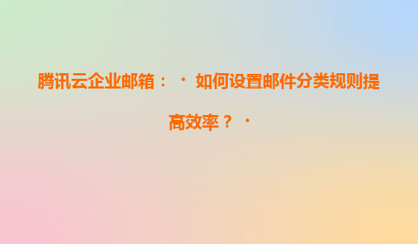 騰訊云企業郵箱:如何設置郵件分類規則提高效率 引言:企業郵箱管理的重要性 在現代企業中,高效的郵件管理是提升工作效率的關鍵。騰訊云企業郵箱作為一款專業的企業級郵箱服務,不僅提供了穩定的郵件收發...