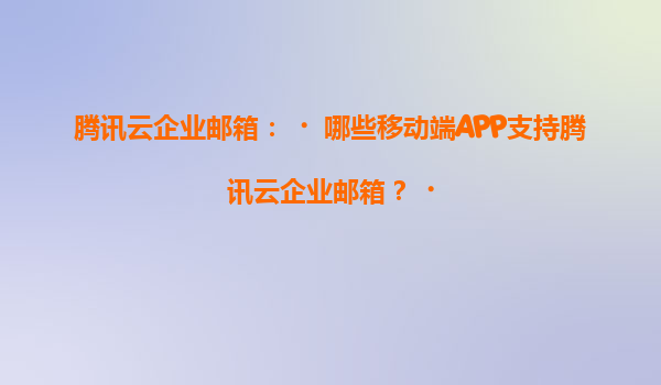 2025-07-04騰訊云企業郵箱移動端支持全解析:高效辦公觸手可及 一、騰訊云企業郵箱的核心優勢 騰訊云企業郵箱作為企業級郵件服務解決方案,依托騰訊強大的技術實力和生態體系,提供高達99.99%的服務可用性,采用分布式架...