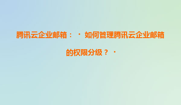 2025-07-04騰訊云企業郵箱:如何管理騰訊云企業郵箱的權限分級? 一、騰訊云企業郵箱權限分級管理的核心價值 騰訊云企業郵箱作為企業級通信解決方案,其權限分級管理功能能夠幫助企業實現精細化管控,保障信息安全的...