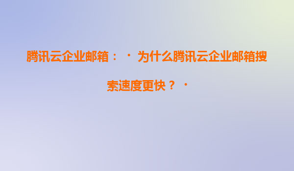2025-07-04騰訊云企業郵箱:為什么搜索速度更快? 引言 在當今快節奏的商業環境中,高效的企業郵箱系統是企業溝通和協作的核心工具之一。騰訊云企業郵箱以其卓越的性能和...