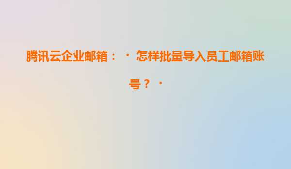 2025-07-04騰訊云企業郵箱:如何高效批量導入員工郵箱賬號 在企業數字化轉型的浪潮中,高效、安全的郵箱系統已成為日常辦公不可或缺的工具。騰訊云企業郵箱憑借其強大的功能、穩定的性能和便捷的管理,成為眾多企業的首選...