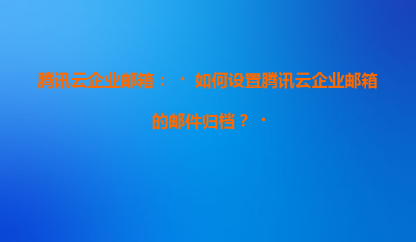 2025-07-04騰訊云企業郵箱:如何設置郵件歸檔及優勢解析 一、騰訊云企業郵箱郵件歸檔的重要性 郵件歸檔是企業數據管理的重要組成部分,尤其對于合規性要求嚴格的行業(如金融、醫療、法律等),歸檔功能可確保郵件歷...