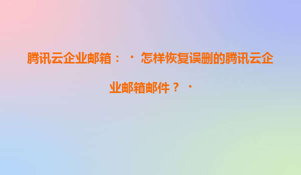 2025-07-04騰訊云企業郵箱郵件恢復指南:高效安全的數據保障 誤刪郵件不用慌,騰訊云提供多重恢復方案 在日常辦公中,誤刪重要郵件的情況時有發生。騰訊云企業郵箱針對這一痛點,提供了完善的郵件恢復機制。無論是個...