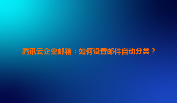 2025-07-01騰訊云企業郵箱:如何設置郵件自動分類? 一、騰訊云企業郵箱的自動分類功能概述 騰訊云企業郵箱作為一款高效的企業級郵件服務,提供了強大的郵件自動分類功能,幫助企業用戶提升郵件管理效率。通過智能規...