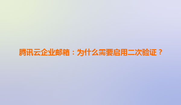 2025-07-01騰訊云企業郵箱:為什么需要啟用二次驗證? 引言 隨著互聯網技術的發展,企業郵箱已經成為現代企業日常溝通和業務往來的重要工具。然而,安全威脅也隨之而來,釣魚攻擊、密碼泄露等事件頻發。騰訊云企...