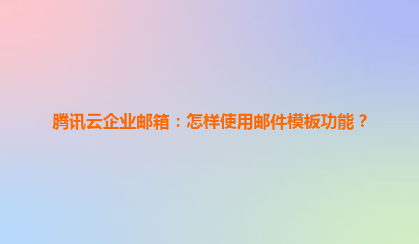 騰訊云企業郵箱:郵件模板功能使用指南 一、引言:為何選擇騰訊云企業郵箱? 騰訊云企業郵箱作為一款高效、安全的企業級通信工具,依托騰訊強大的技術實力和豐富的運營經驗,為用戶提供穩定可靠的郵...