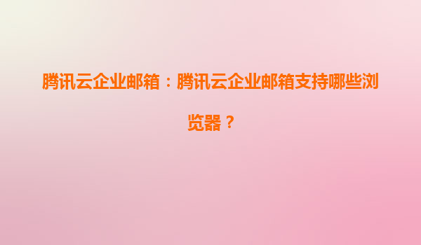 2025-07-01騰訊云企業郵箱:全面兼容主流瀏覽器,助力企業高效溝通 一、騰訊云企業郵箱支持的瀏覽器列表 騰訊云企業郵箱作為一款專業的企業級郵件服務,為確保用戶在不同...