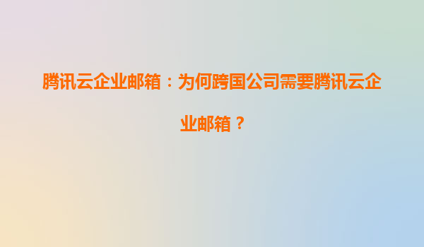 2025-06-28騰訊云企業郵箱:為何跨國公司需要騰訊云企業郵箱? 在全球化商業環境中,跨國公司面臨著郵件通信的獨特挑戰——時區差異、語言障礙、數據主權合規以及跨地域團隊協作需求。騰訊云企業郵箱憑借騰訊云強大的技術底...
