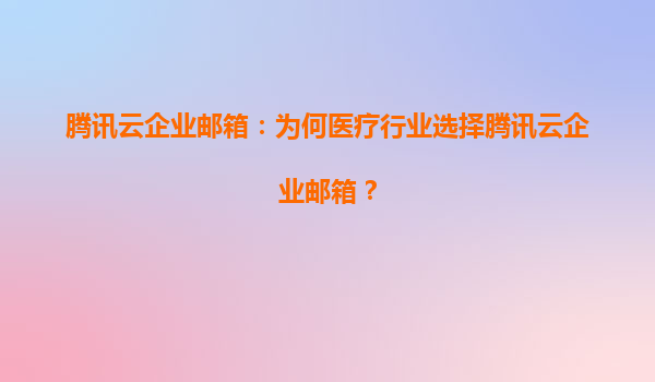 2025-06-28騰訊云企業郵箱:為何醫療行業選擇騰訊云企業郵箱? 在數字化轉型浪潮中,醫療行業對通信工具的安全性、合規性及效率要求日益嚴格。騰訊云企業郵箱憑借其強大的技術基因與生態整合能力,正成為...